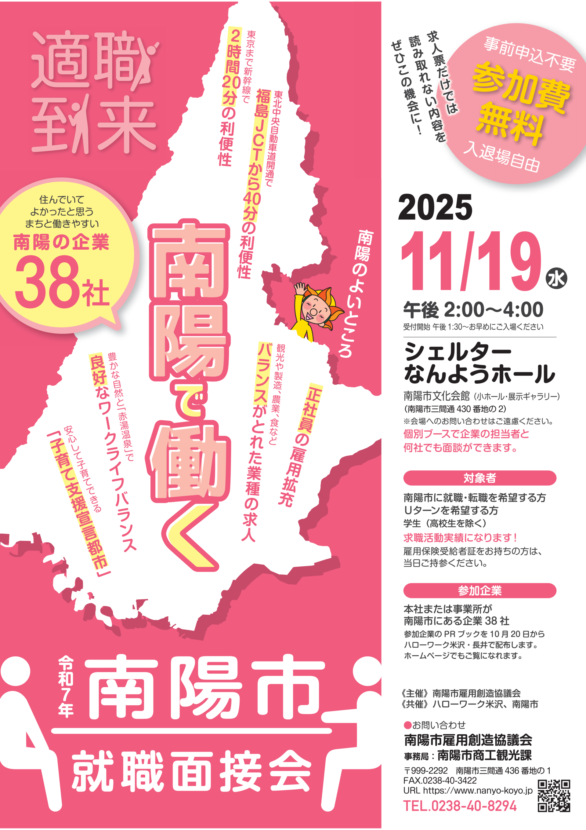 南陽市と市内経済団体などで構成された協議会です。求職者の就職促進や事業所の雇用拡大を図る事業を実施します。