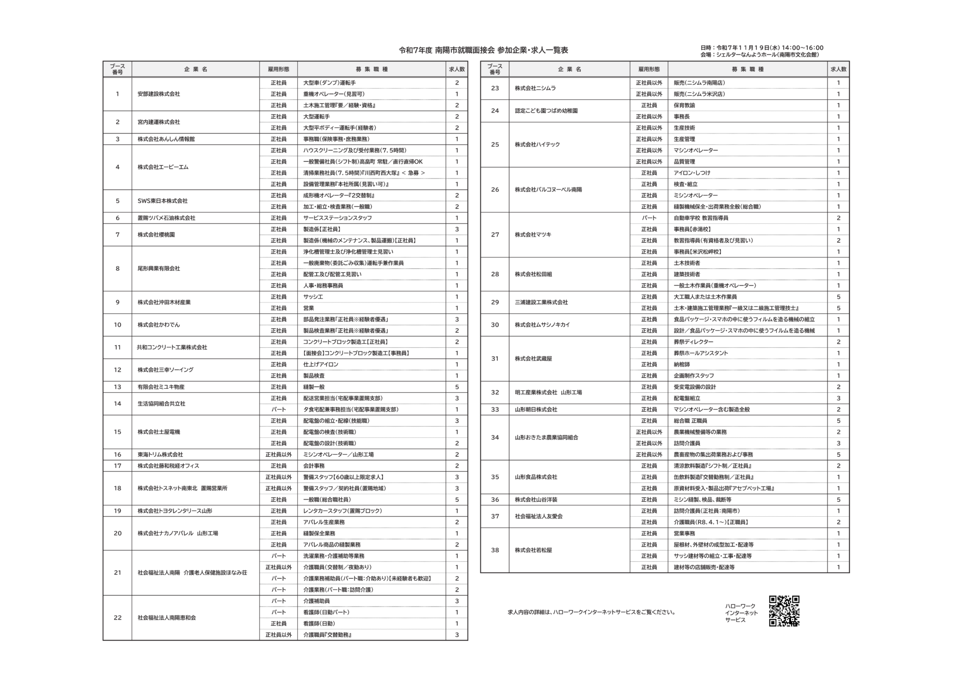 ハローワーク米沢の相談コーナーも設置しますので、当日参加企業の情報のほか就職に関する相談が受けられます。